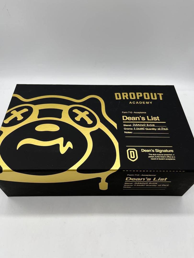 The Dropout Academy 3G Disposable Diamond Rosin holds three grams of solventless diamond rosin in a sturdy, draw-activated vape pen. Inhale to spark the dual ceramic coils that melt the crystalline rosin into thick, terpene-forward vapor from the opening pull to the last. The pre-charged battery supports the full three-gram load without recharge, perfect for extended pocket carry or shared sessions.
